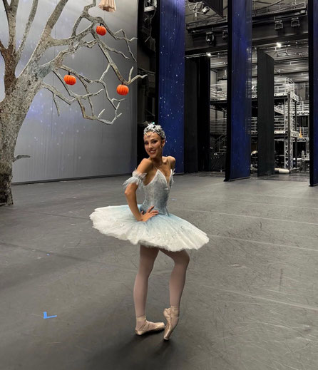Unsere italienische Gaststudentin während dem Ballettunterricht und auf Ihrer ersten internationalen Tournee durch England 2025. Abschluss Master of Arts - Tanz an der Hochschule für Musik und darstellende Kunst Mannheim. Elena Vichi hat einen Vertrag beim Finnischen Nationalballett erhalten.